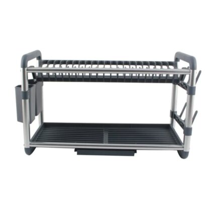 It is an aluminium 2-tier dish drying rack.Its a kitchen accessory designed to help dry dishes effectively.