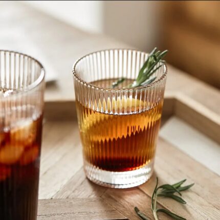 This is a Art Deco-style ribbed glass.The glasses are highly durable and suitable for various beverages like cocktail,iced coffee, whiskey