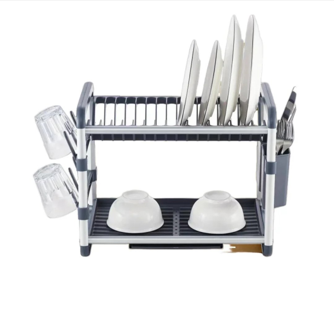 It is an aluminium 2-tier dish drying rack.Its a kitchen accessory designed to help dry dishes effectively.
